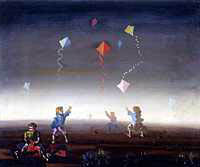 Meninos Soltando Papagaios é de 1947. Pintado em tinta a óleo sobre madeira, sua altura é de 60 centímetros e meio e sua largura é de 73 centímetros e meio